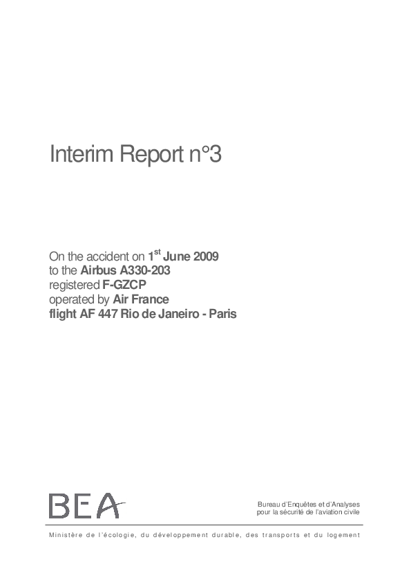 3rd Interim report into A330 loss of control accident on 1 June 2009 - Full Report in English