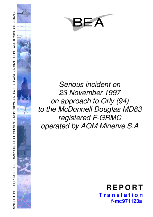 BEA - Report f-mc971123a (English) - MD83 CFIT event, Paris Orly, 23 Nov 1997