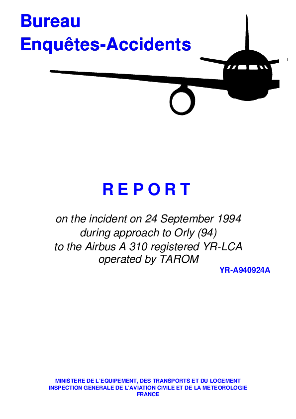BEA - Report YR-A940924A: A310 LOC Orly 1994