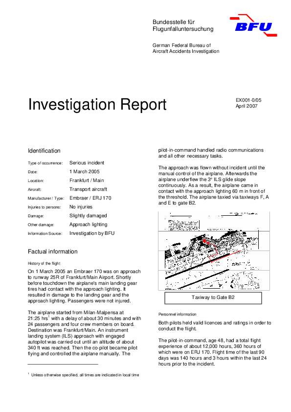 BFU - EX001 - 0/05 - E170 Collision with apporach lights, Frankfurt, 1 March 2005