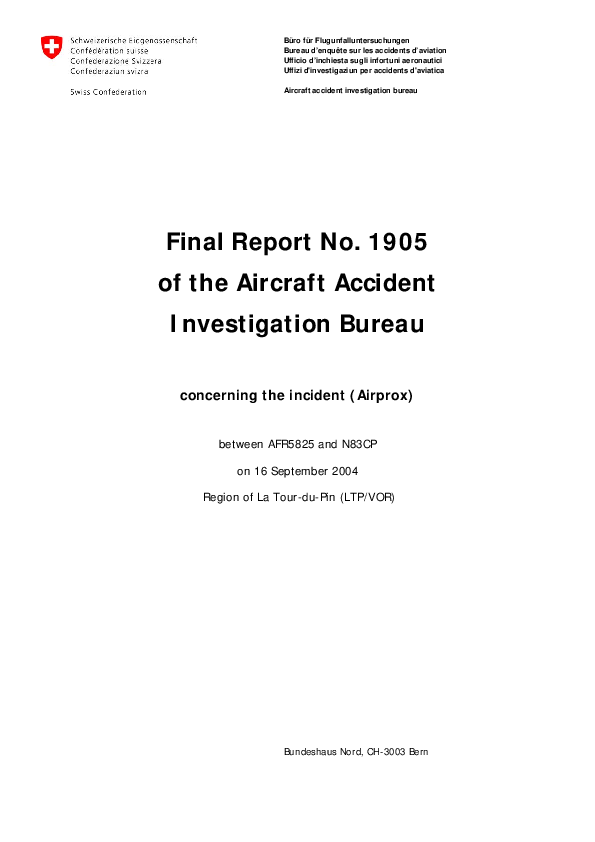 BFU - Report No. 1905 (AIRPROX, Geneva, 2006)