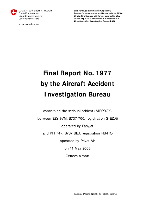 BFU - Report No. 1977 (AIRPROX, Geneva, 2006)
