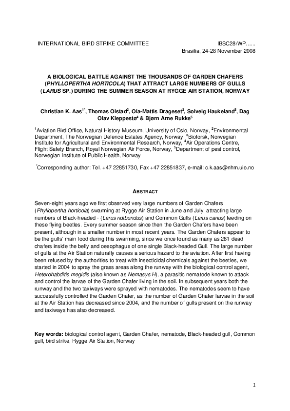 A biological battle against the thousands of garden chafers that attract large numbers of gulls duri