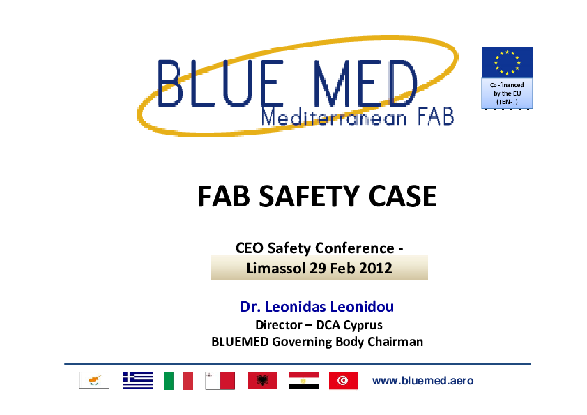 This presentation contains the FAB Safety Case of Blue Med - its documented structure, argumentation, the safety benefits demonstration.