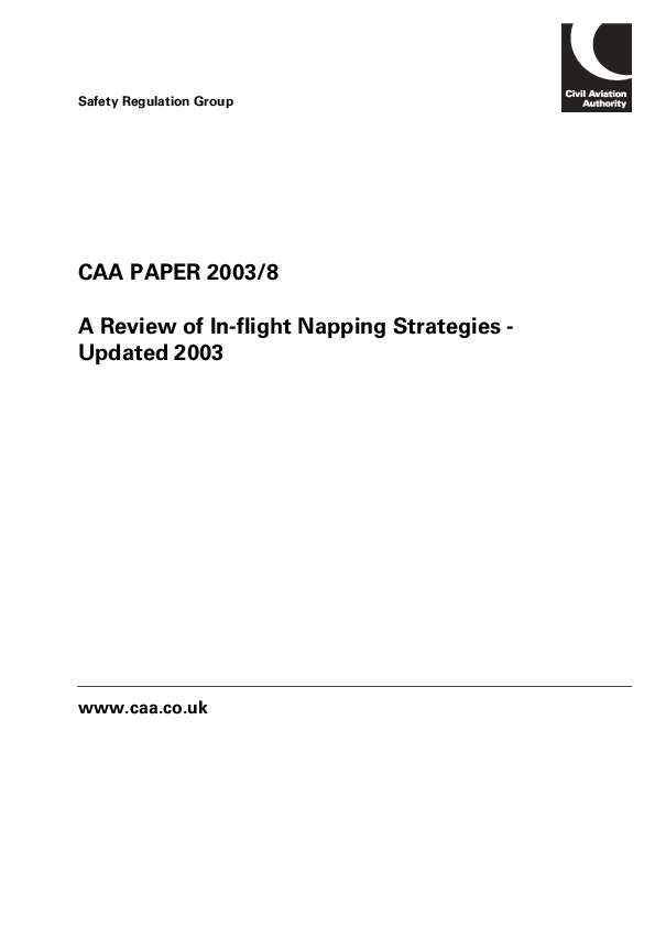 CAA Paper 2003/08- A Review of In-flight Napping Strategies Updated 2003.