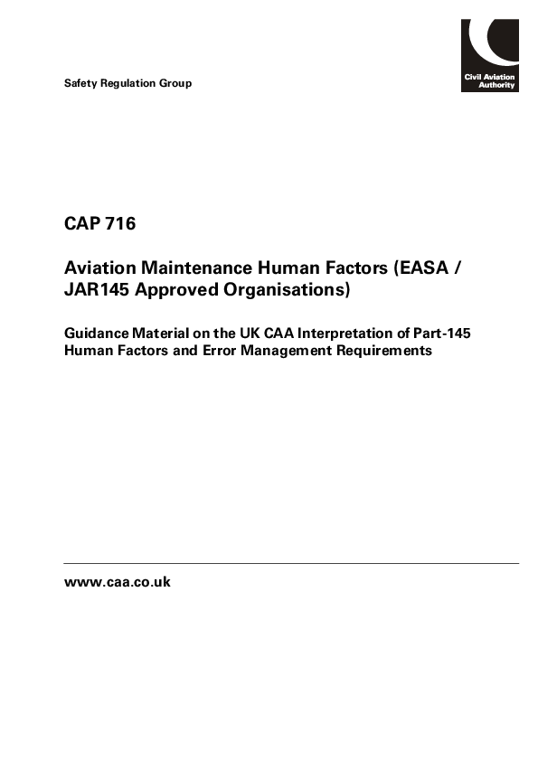 CAP 716: Aviation Maintenance Human Factors