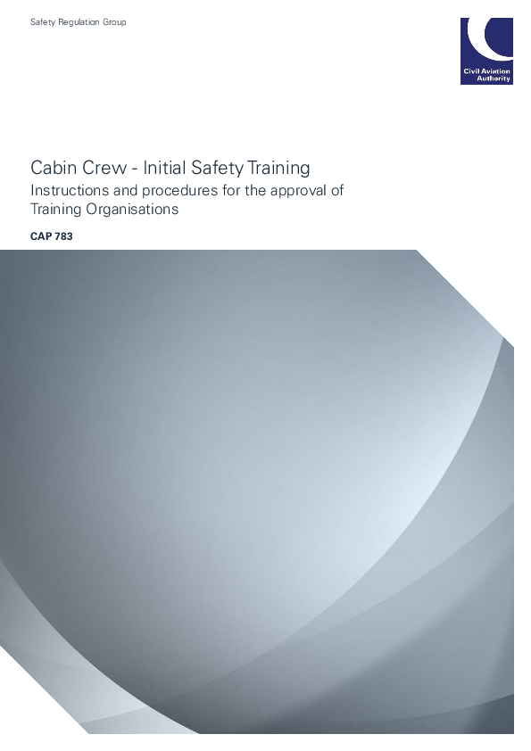 Issue 2 - April 2013. This second edition of CAP 783 Cabin Crew - Initial Safety Training completely replaces the first issue, published August 2008 (ISBN 978 0 11792 099 6). As of April 2013 in the UK the parts of the EASA Aircrew Regulations relating to initial cabin crew training supersede those parts of the EU-OPS regulations which relate to initial cabin crew training. This CAP has been updated to reflect these changes.