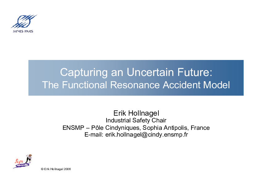 Capturing an Uncertain Future - The Functional Resonance Accident Model (Presentation)