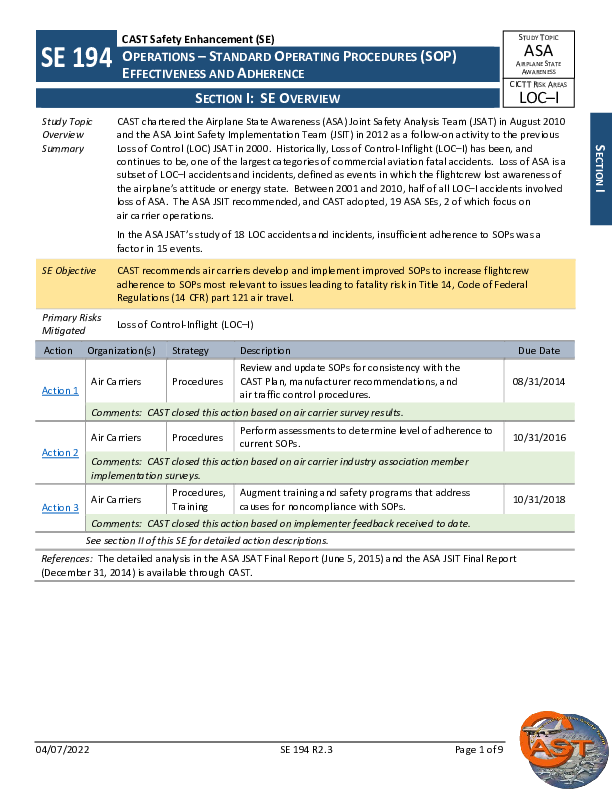 CAST SE 194 R2.3 - ASA - Operations - SOP Effectiveness and Adherence