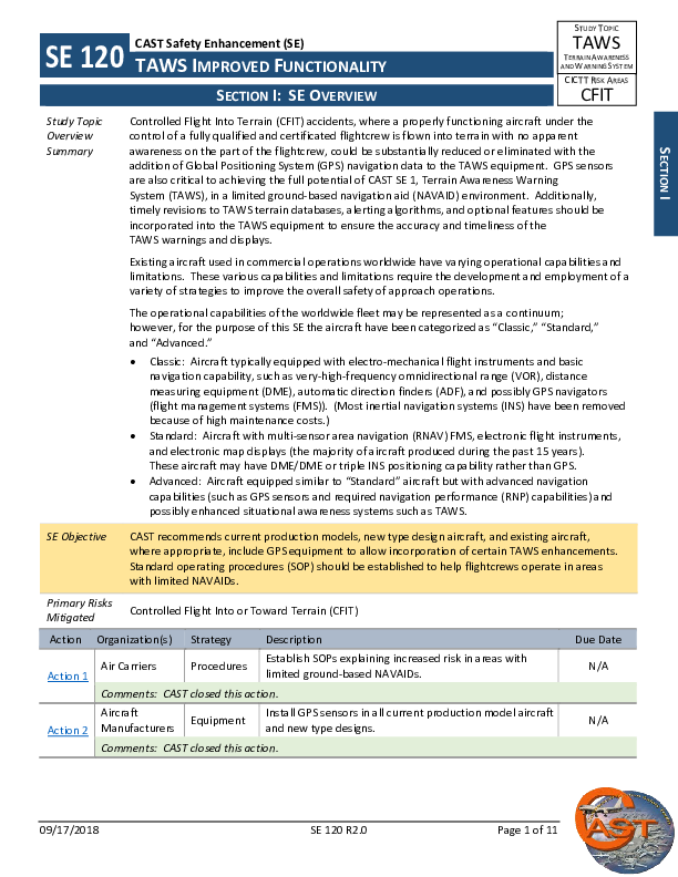 CAST - SE120 DIP Rev 2 - TAWS Improved Functionality