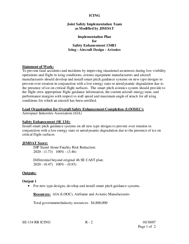 Detailed Implementation Plan for Safety Enhancement 134 Icing - Aircraft Design - Avionics