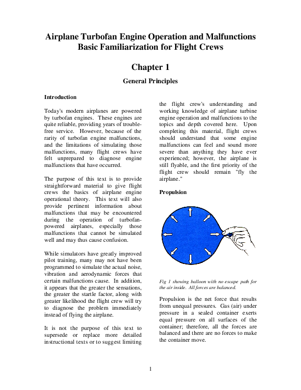 Training material developed by the FAA and ATA committee on Turbofan Engine Malfunction Recognition and Response Airplane Turbofan Engine Operation and Malfunctions Basic Familiarization for Flight Crews