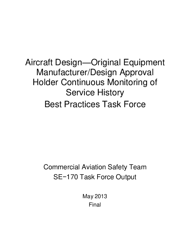 Aircraft Design�Original Equipment Manufacturer/Design Approval Holder Continuous Monitoring of Service History Best Practices Task Force May 2013