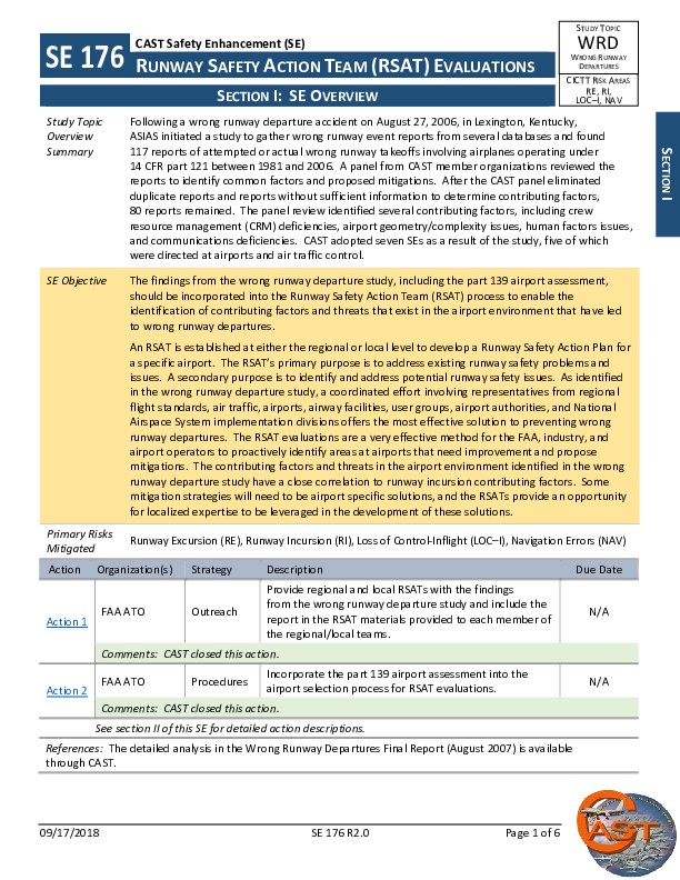 CAST - SE176R2.0 DIP Wrong Runway Departures Safety Enh 176R1 Runway Safety Action Team Evaluatiatio