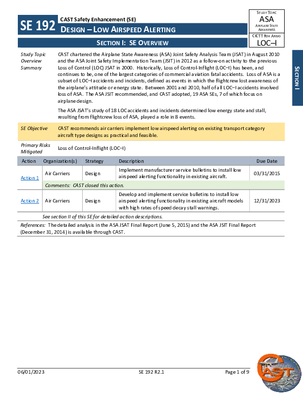 CAST SE192 R2.1 ASA - Design - Low Airspeed Alerting