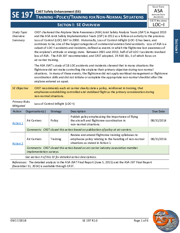 CAST - SE197R1.0 DIP ASA Training - Policy and Training for Non-Normal Situations