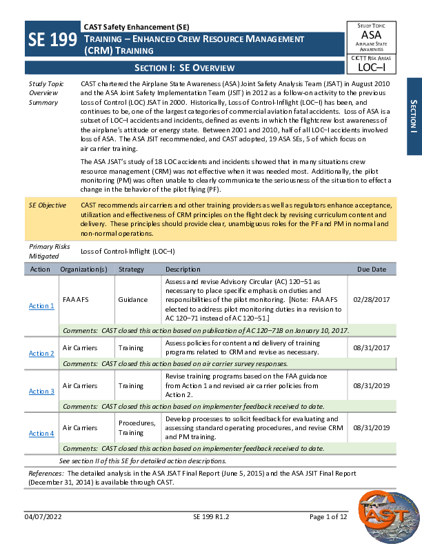 CAST SE199R1.2 ASA Training Enhanced Crew Resource Management Training