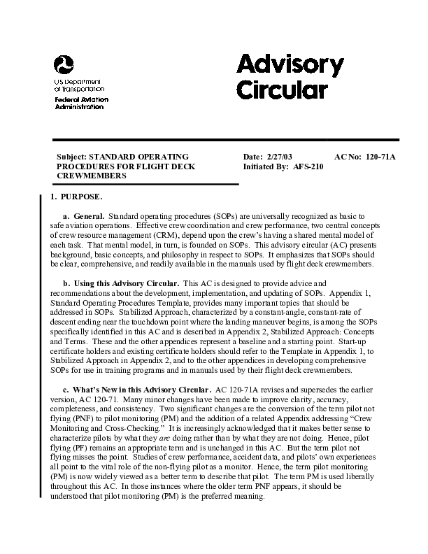 CAST - SE2 Output1: AC120-71 Standard Operating Procedures for Flight Deck Crewmembers