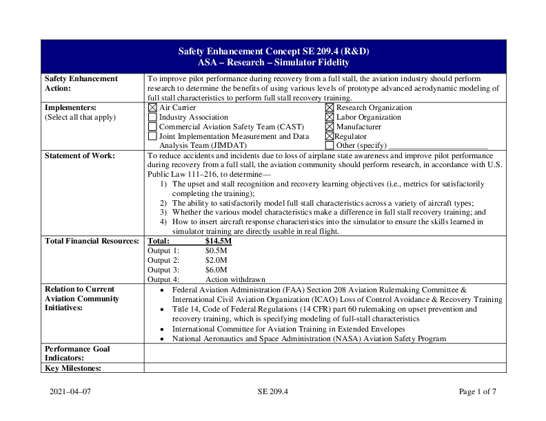 Detailed Implementation Plan for SE209.2: Airplane State Awareness - Simulator Fidelity (R-D)