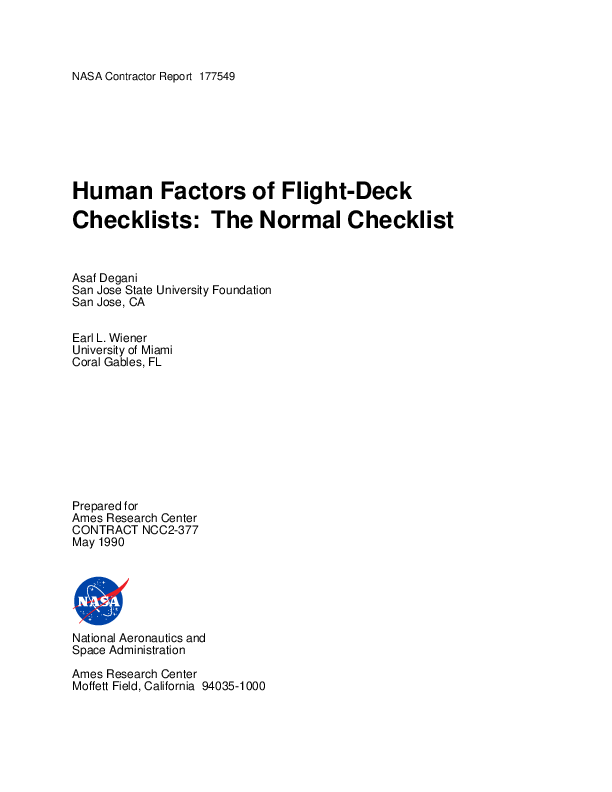 CAST - SE21 Ouput2 - Human Factors of Flight-Deck Checklists: The Normal Checklist