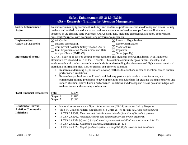 Detailed Implementation Plan for SE211.2: Airplane State Awareness � Training for Attention Management (R-D)