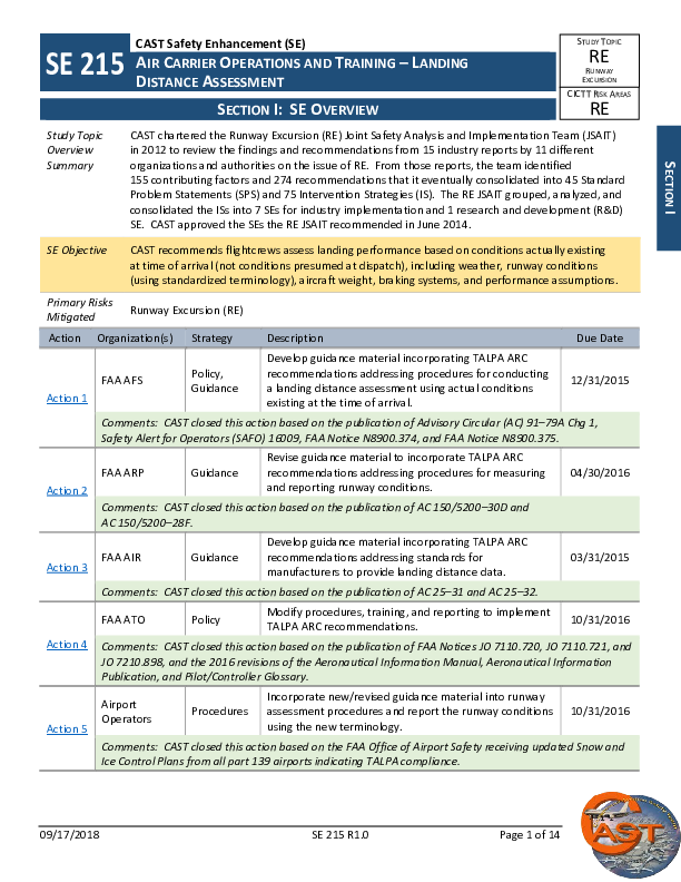 CAST - SE215R1.0 DIP RE Airline Operations and Training - Landing Distance Assessment