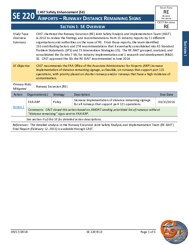 CAST - SE220R1.0 RE – Airports – Runway Distance Remaining Signs