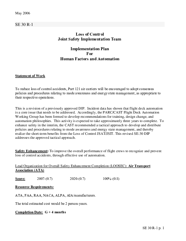 CAST - SE30 DIP Rev 1 LOC Human Factors and Automation