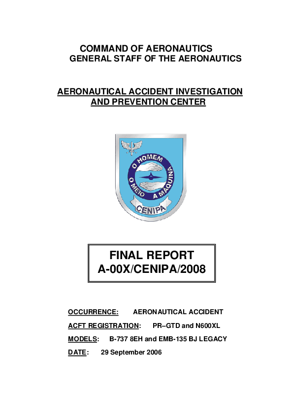 CENIPA - A-00X/CENIPA/2008 Accident Report: B738 & E135 mid-air collision