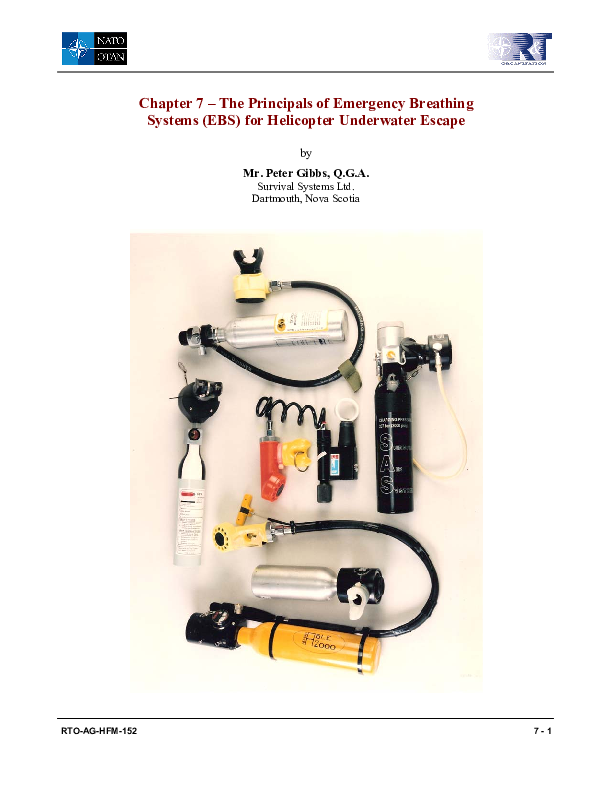 Chapter 7 of NATO RTO-AG-HFM-152 The Principals of Emergency Breathing Systems (EBS)
