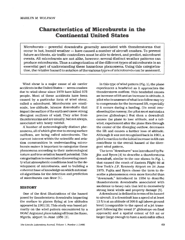 Microbursts - powerlul downdrafts generally associated with thunderstoms that occur in hot, humid weather - have caused a number of aircraft crashes. To prevent future accidents, air traffic controllers mustbe able to detect, and predict, microburst events. All microbursts are not alike, however; several distinct weather patterns can produce microbursts. Thus a categorization ofthe different types of microbufsts is an essential part of understanding these hazardous phenomena. Using this categorization, the relative hazardtoaviation of the various types ofmicrobursts can be assessed.
