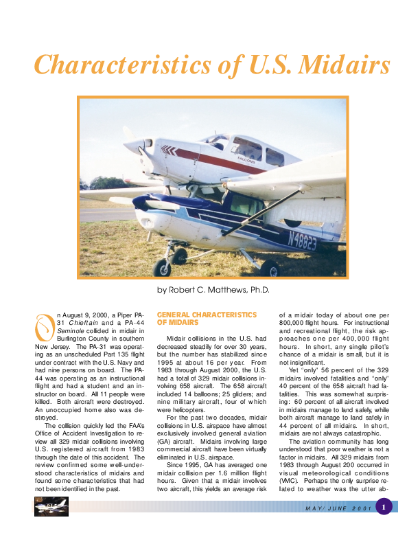 Characteristics of US mid-air collisions. Areticle extracted from US FAAviation News May/June 2001