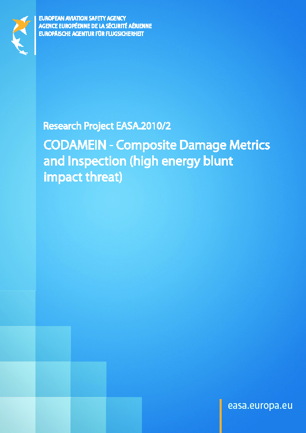 Research Project EASA.2010/2. The outcomes of this research demonstrated a potentially significant safety threat of high energy low velocity blunt impact on composite aircraft fuselages which may cause extensive internal structural damage with low detectability when performing visual inspection of the external surface.