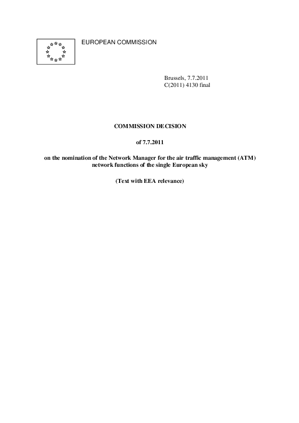 Commission Decision of 7.7.2011 on the nomination of the Network Manager for the air traffic managem