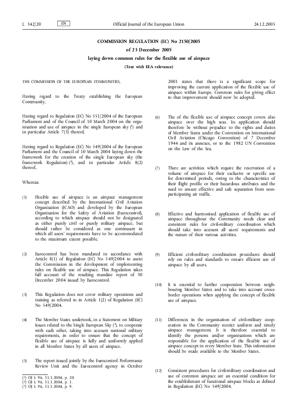 Commission regulation (EC) No 2150/2005 laying down common rules for the flexible use of airspace