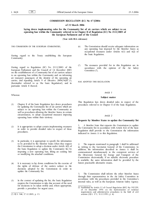 Regulation laying down implementing rules for the Community list of air carriers which are subject to an operating ban within the Community referred to in Chapter II of Regulation (EC) No 2111/2005 of the European Parliament and of the Council