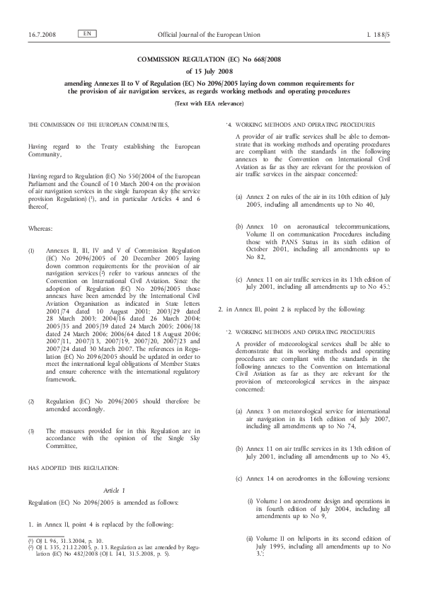 Commission regulation (EC) No 668/2008 amending Annexes II to V of Regulation (EC) No 2096/2005 layi