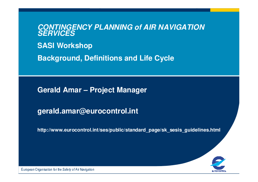 Contingency planning of Air Navigation Services- Background, definitions and Life Cycle