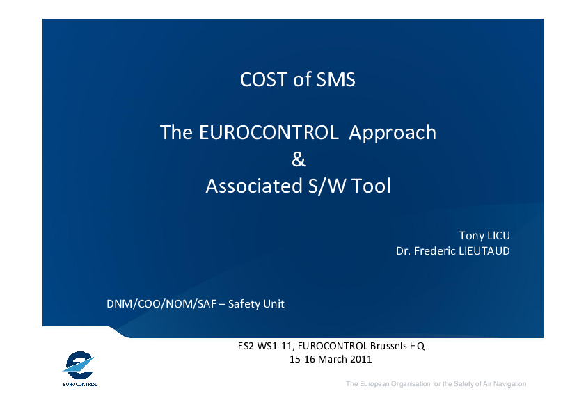 Cost of SMS: EUROCONTROL Approach & Associated S/W Tool