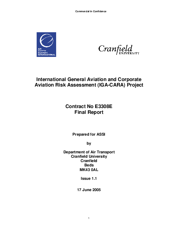 Cranfield University Department of Air Transport International General Aviation and Corporate Aviation Risk Assessment (IGA-CARA) Project, Cranfield, Final Report, Issue 1.1, June 2005,http://www.airsafety.aero/assets/uploads/files/assi_IGA_CARA_report_web…