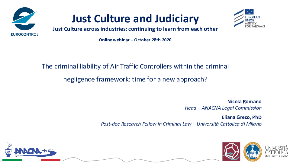 This presentation shows the research done by the ANACNA and Universita Cattolica del Sacro Cuore towards on the Just Culture approach.