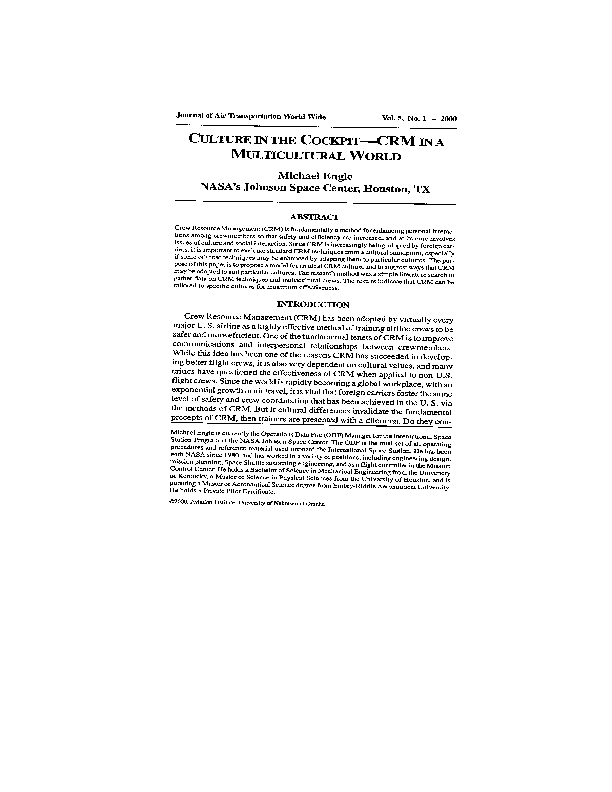 Culture in the cockpit - CRM in multicultural world (Journal of Air Transportation Worldwide, vol 5,