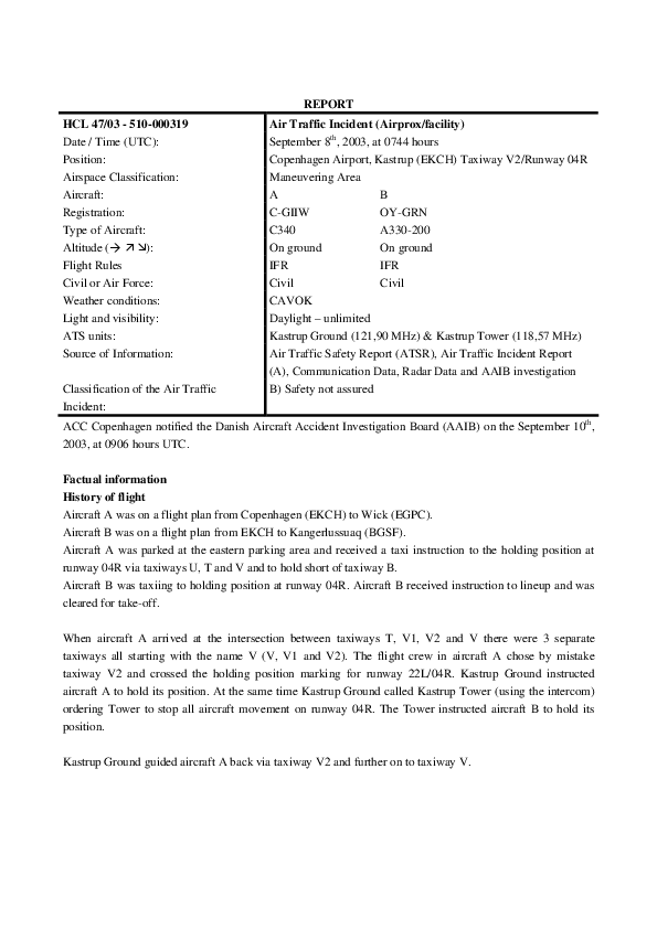 Danish AAIB - HCL 47/3 Air Traffic Incident Report, Copenhagen RI