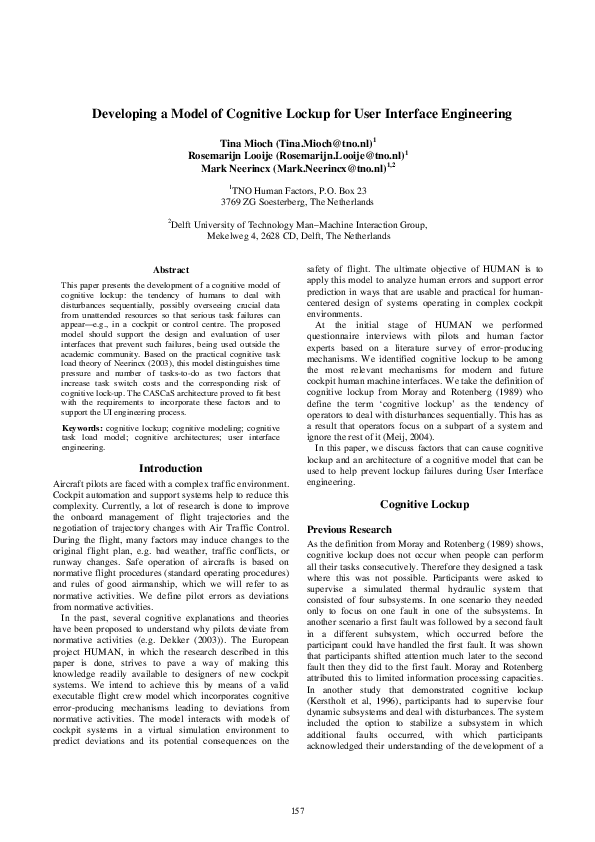 Developing a Model of Cognitive Lockup for User Interface Engineering