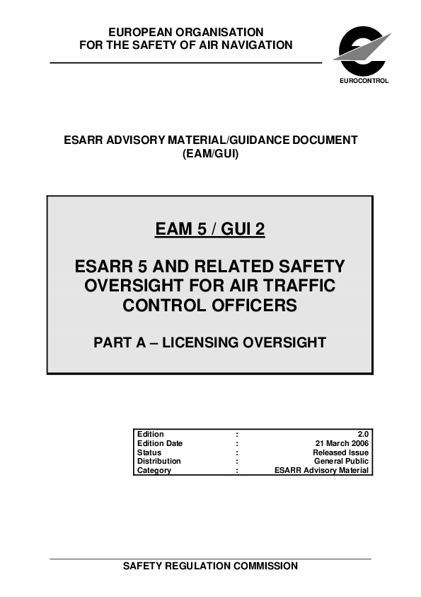 EAM 5 / GUI 2- ESARR 5 and Related Safety Oversight for Air Traffic Control Officers- Licensing Over