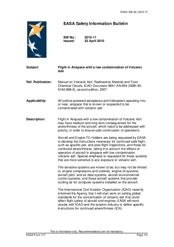 EASA Volcanic Ash SIB