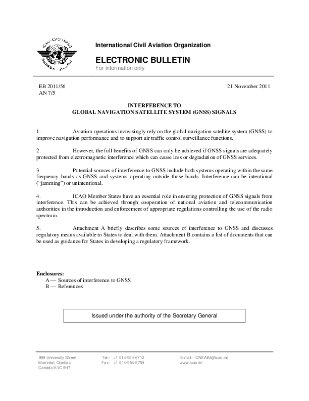 EB 2011/56: Interference to Global Navigation Satellite System (GNSS) Signals