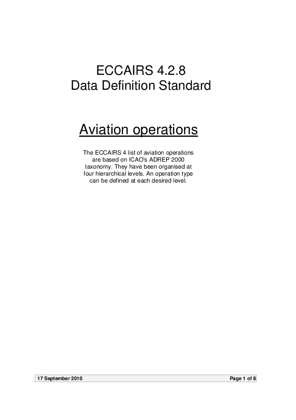 ECCAIRS 4.2.8 - Aviation operations