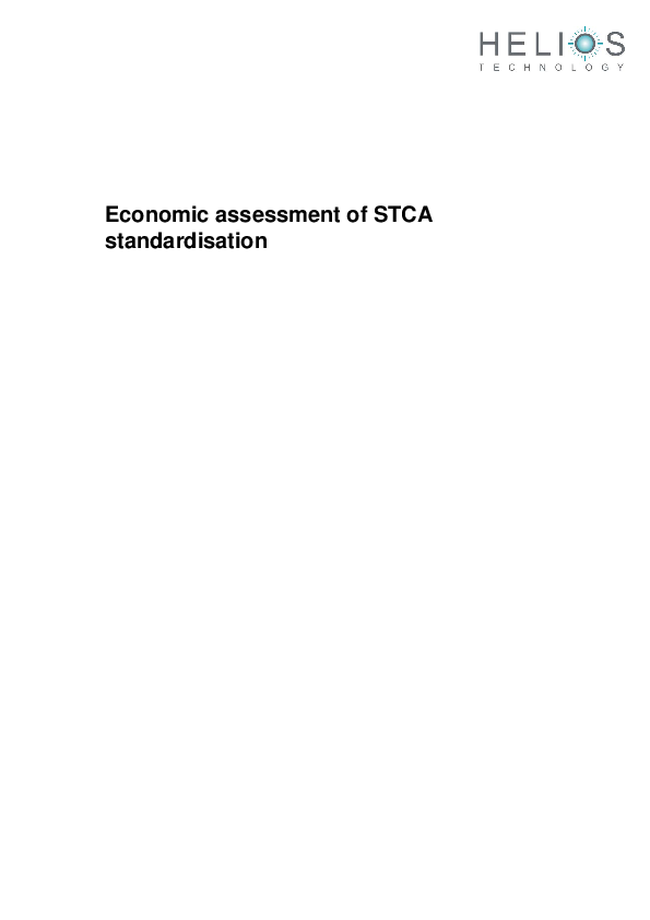 This document is an economic assessment for the design, implementation and operation of standardised STCA (Short Term Conflict Alert) throughout the ECAC area, commissioned by EUROCONTROL from HELIOS Technology Ltd.
