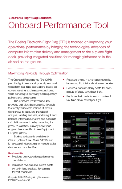 Electronic Flight Bag Solutions: Onboard Performance Tool